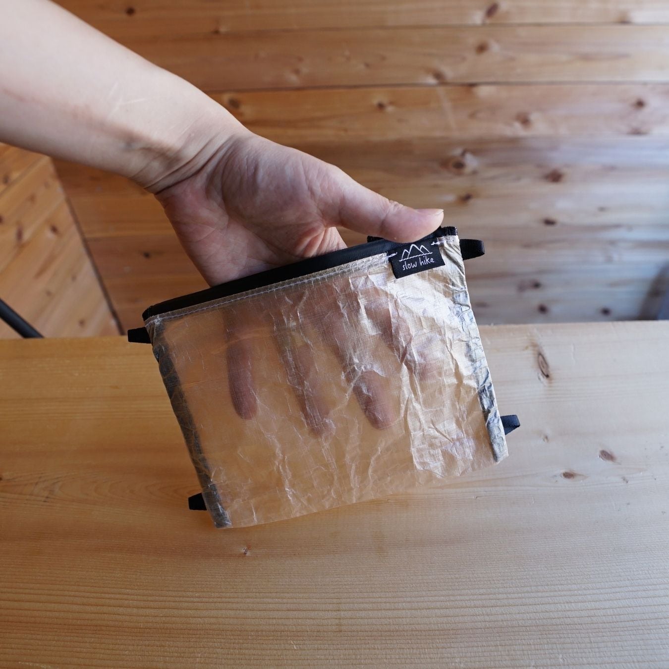 DCF(Dyneema® Composite Fabric)は超軽量かつ高強度、防水性にも優れた高機能素材です。濡れても重くならず、過酷な環境にも対応します。引き裂きには非常に強い一方で、表面の擦れにはやや弱く、白化や摩耗が生じやすい点がデメリットです。