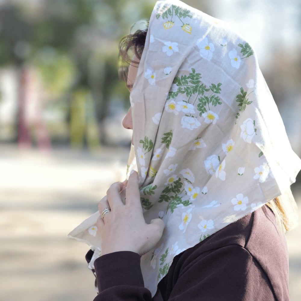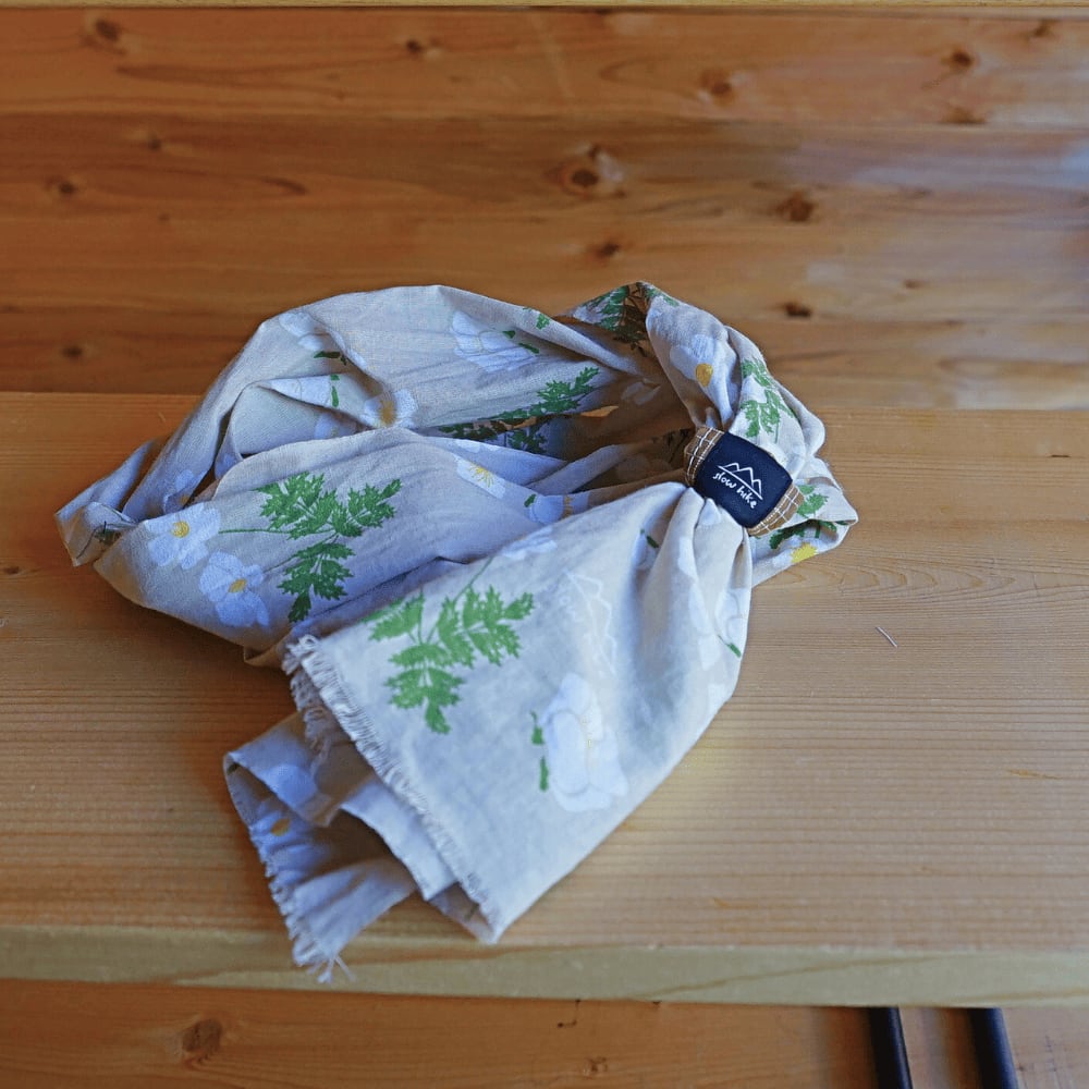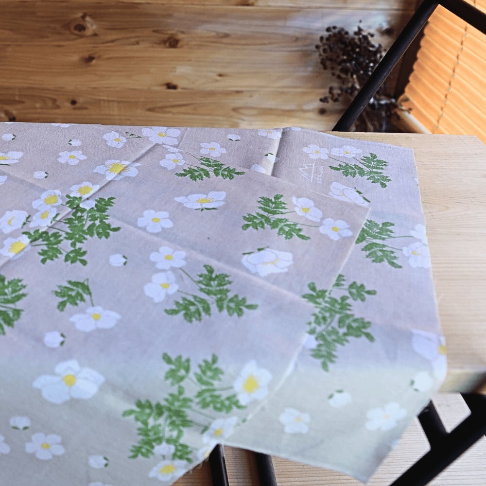 チングルマをモチーフにした図案を手ぬぐいにしました。