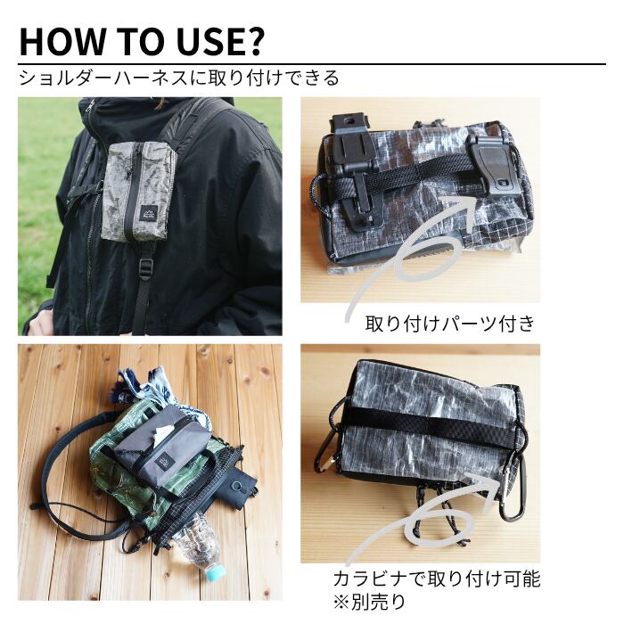 ・リュックのショルダーハーネスに取付可能