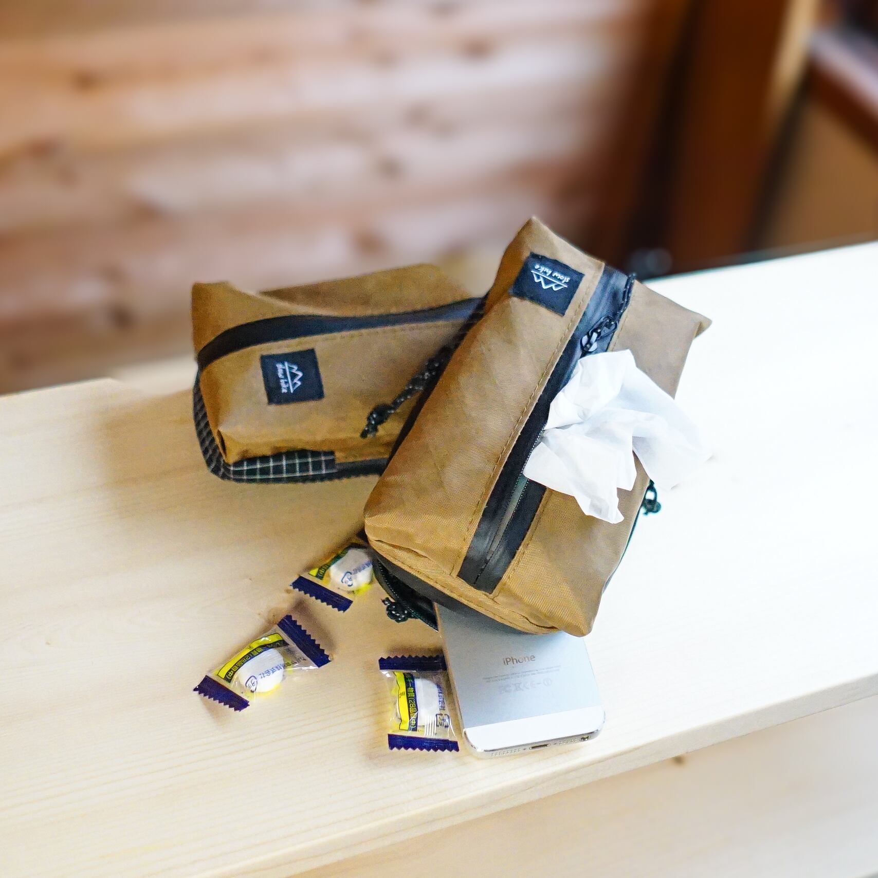 防水・撥水素材とアクアガードファスナーを採用した多機能ポーチです。