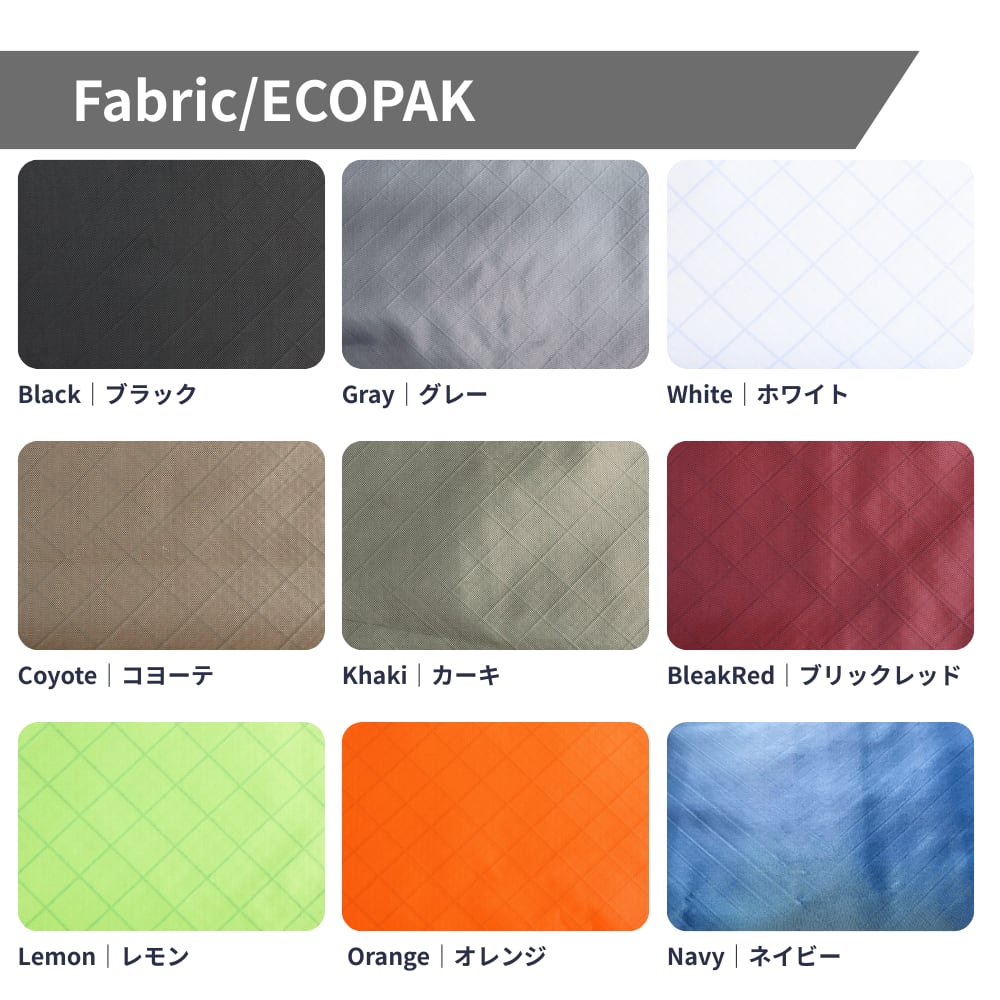 100%リサイクル素材から作られた高機能ファブリック。防水性・耐久性・退色耐性に優れ、引き裂きや摩耗にも強く、X-Pacと同等の性能を持ちながら環境負荷を抑えています。軽量でハリのある質感とマットな見た目が特長で、機能性とデザイン性を両立したサステナブルな素材です。